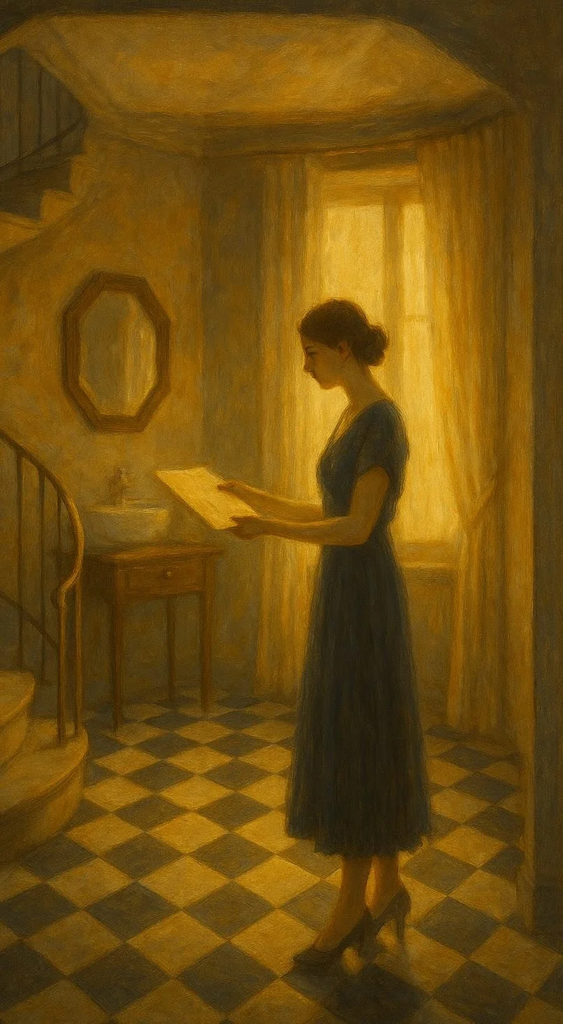 As I changed my shoes, a woman entered. She washed her hands and removed her heels, calm and methodical. She then retrieved a folder, added a document, and carefully wrote her name on its front. She handed it to me, asking that I return it to the hotel. She was departing for another destination.
